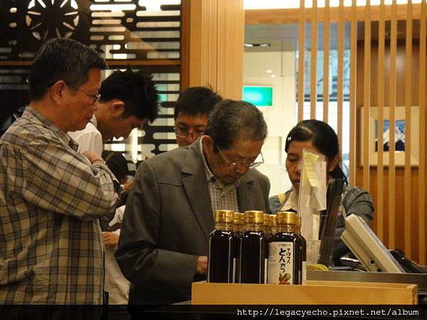 到了新光三越,我們先到勝博殿登記訂位用餐,父親好喜歡這裡切得極細的高麗菜絲佐和風醋,還有薑汁燒肉。