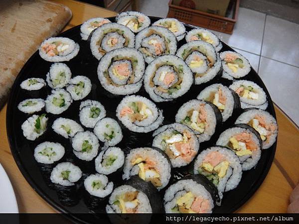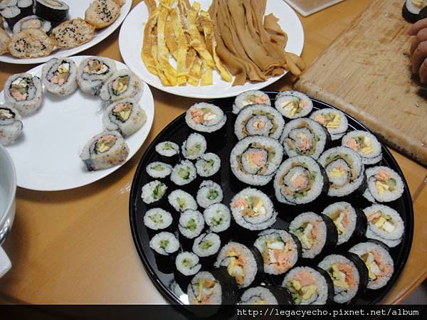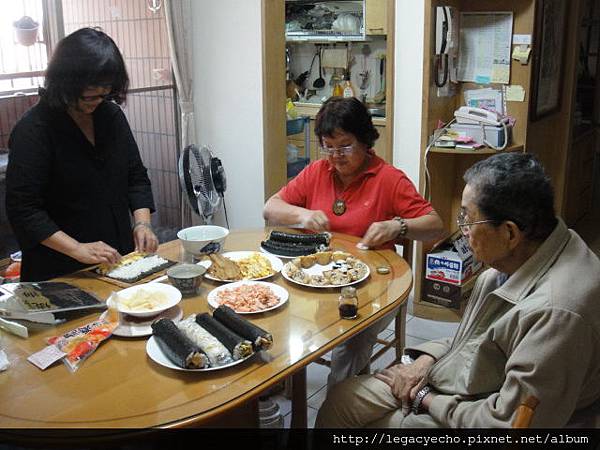 約了我的好姊妹沿穗、惠珍利用星期日下午,一起來為父親製作壽司。