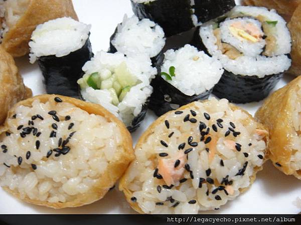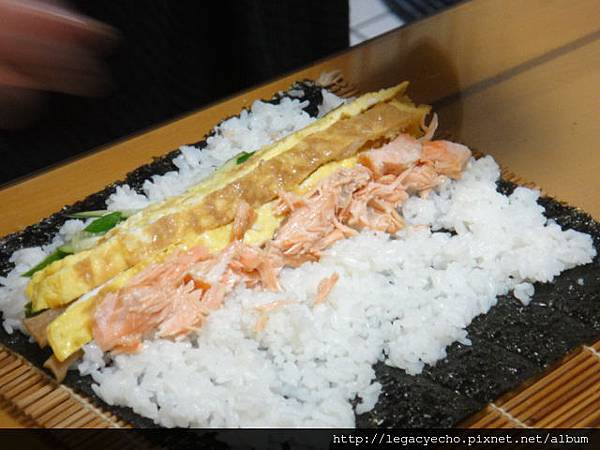 自家做的壽司,捲了油脂豐厚的鮭魚,料好實在,再加上Q彈的米飯,蠻好吃的喔!