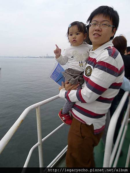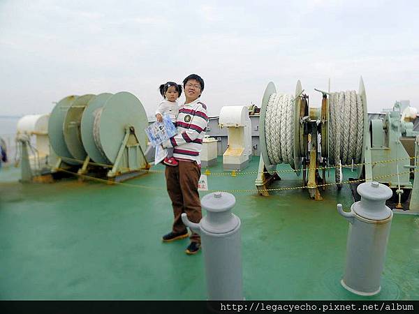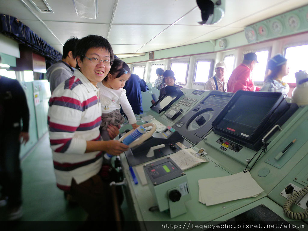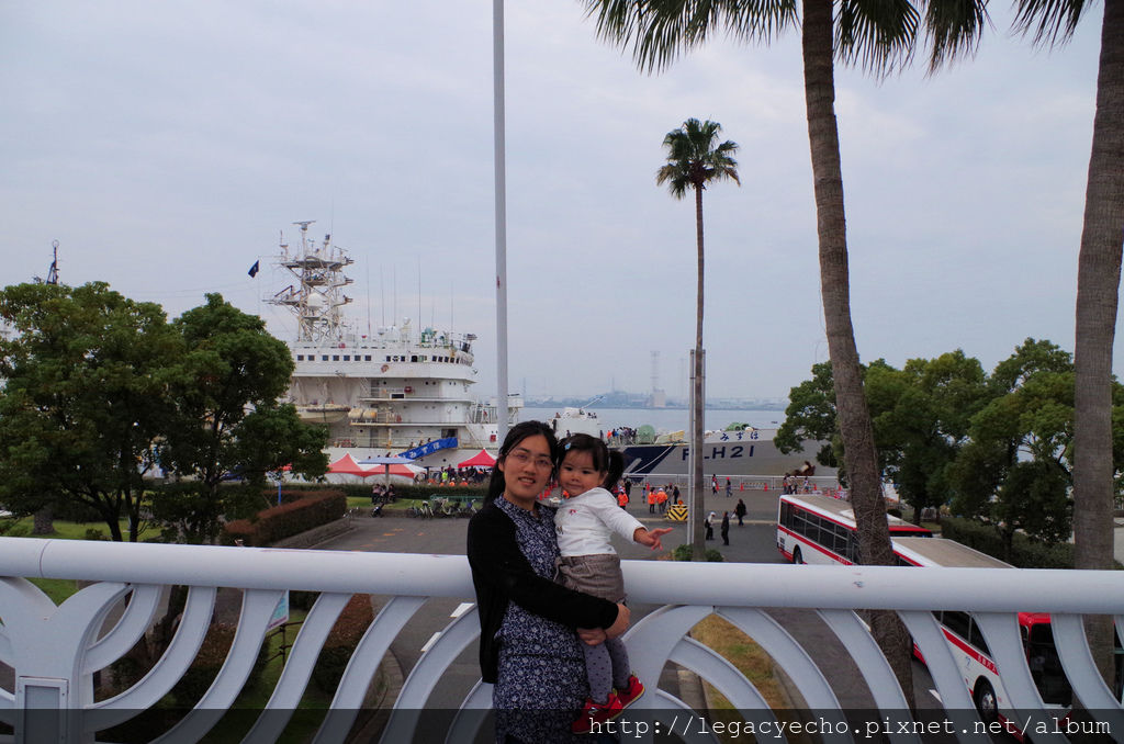 日本海上自衛隊的救援艦停靠在名古屋港,舉行民眾參訪祭典,亮亮隨著亮爸、亮媽也一起登艦參訪。