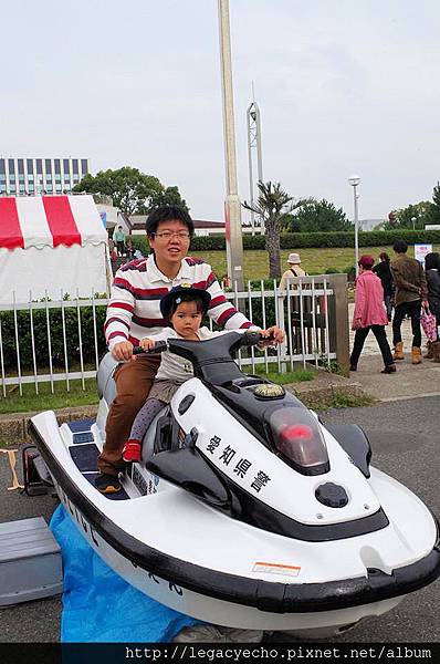 亮亮和亮爸也擺了超酷的樣子。騎著供拍照用的水上摩托車。