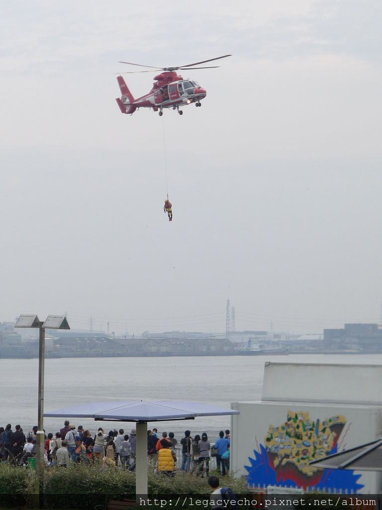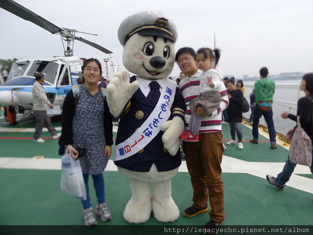 名古屋港好熱鬧,好多民眾來參觀海上自衛隊救援艦及海猿的工作,連鹹蛋超人都一起來湊熱鬧。