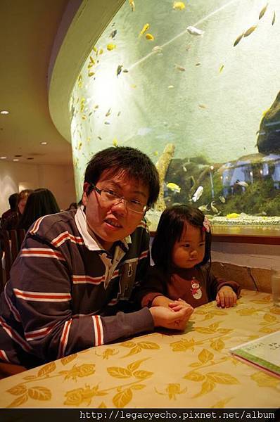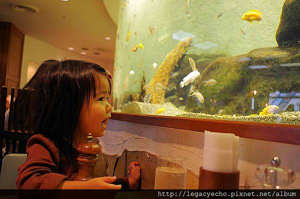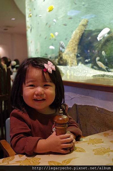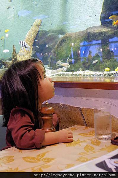 名古屋水族館的餐廳也有巨型的水族箱,五顏六色的熱帶魚就在桌邊陪大家用餐。