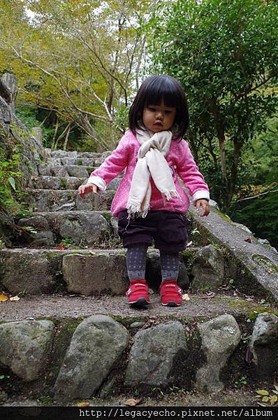 亮亮走了不少山路,登上箕面山,想看綠葉轉紅。