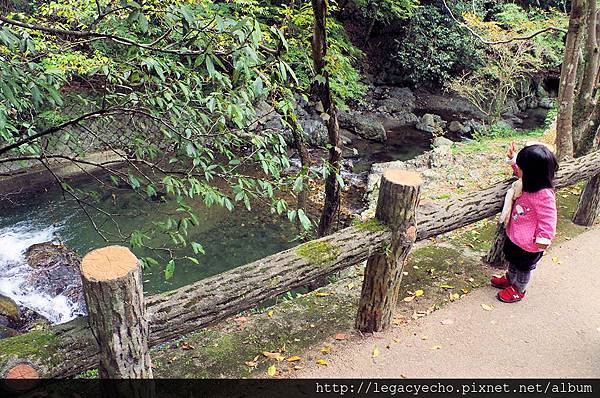 箕面山頂上,有一道更壯觀的瀑布,但對亮亮來說要爬到那麼高的地方,還不合適。