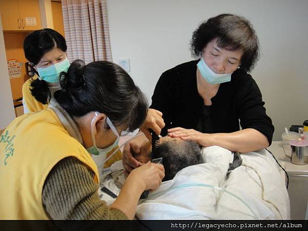 一大早淑菁姐為父親修剪頭髮與指甲,接著洗泡澡。