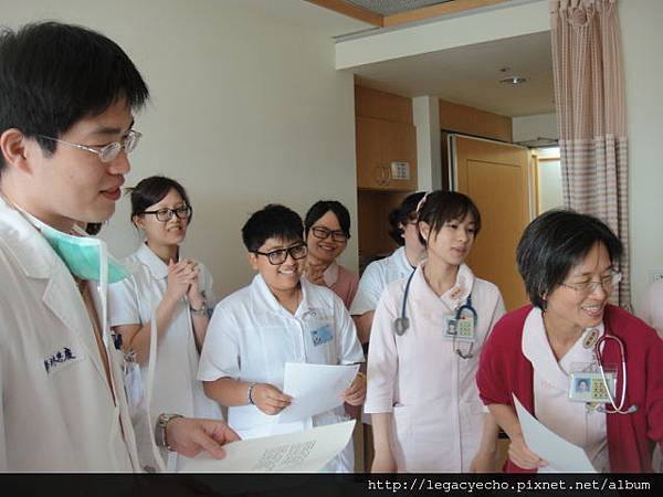 上午,所有照顧父親的住院醫師、護理長及護理師美女群,到病房為父親唱了聖誕快樂歌,他們一致認為父親是勇敢又合作的病人。