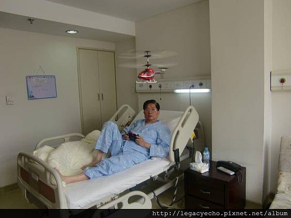 (註:爸爸進行化療時,住院期間在病床上玩遙控直升機,除了訓練自己的專注與靈敏外,另一方面讓人不為他擔心。)
