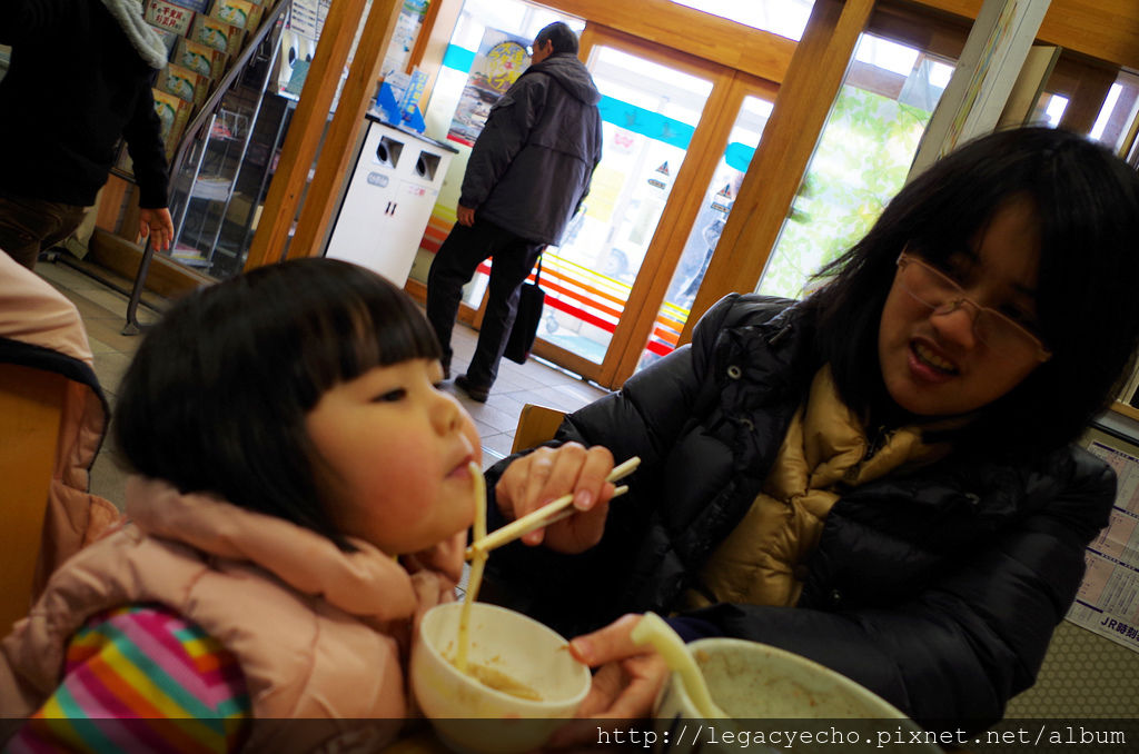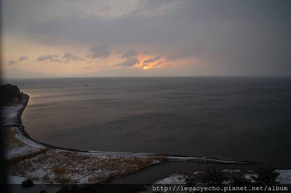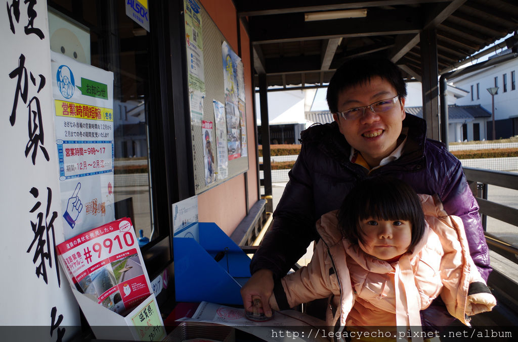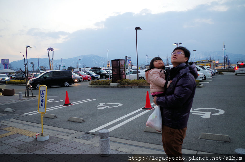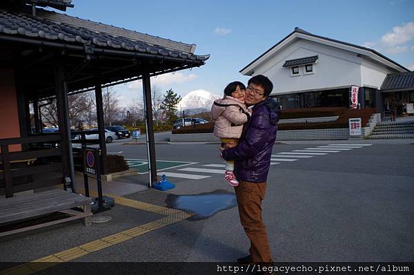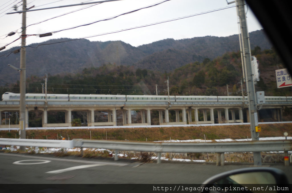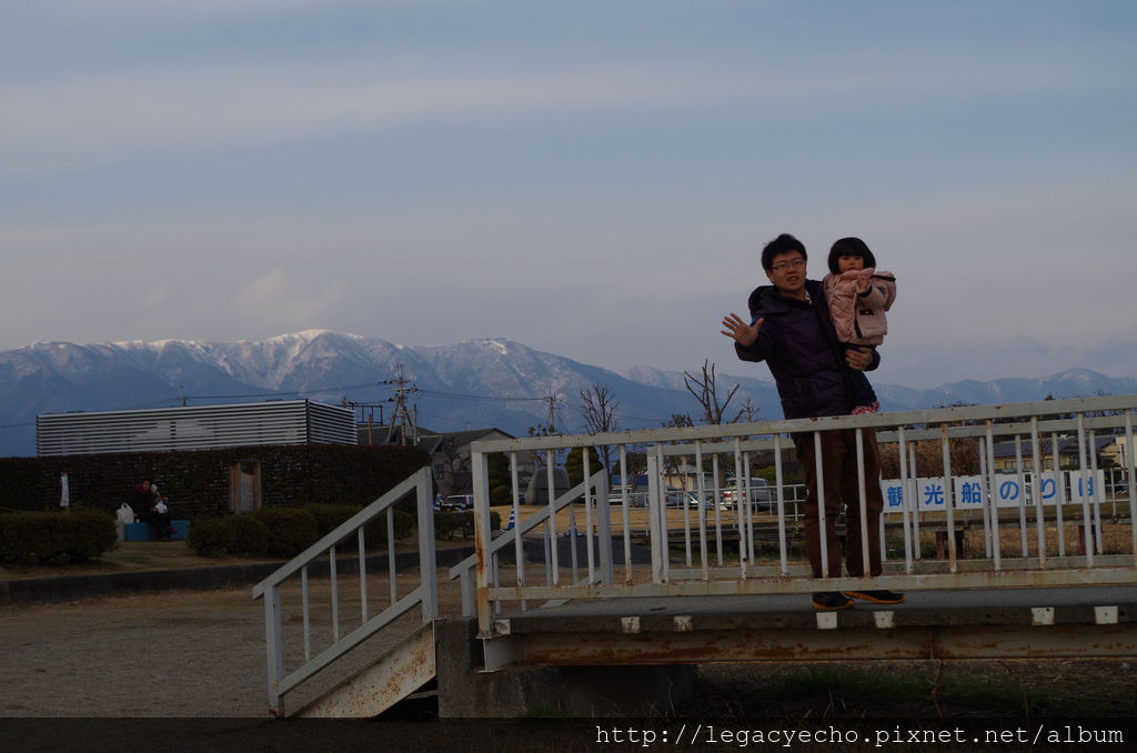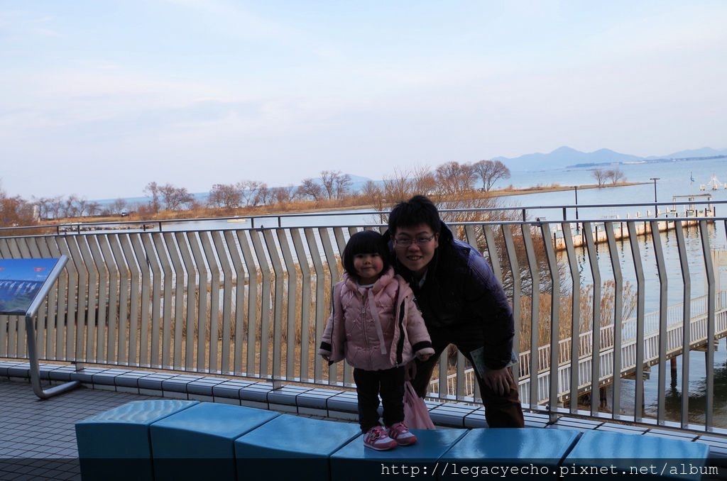 2012年11月和阿祖去福井恐龍博物館時搭雷鳥號新幹線,那時琵琶湖畔滿山楓紅,這一次則由亮爸爸開車,琵琶湖則是下雪的景致。