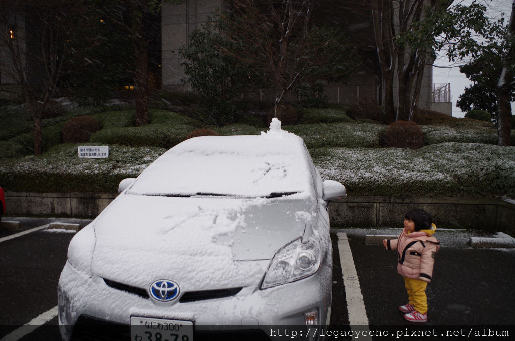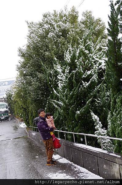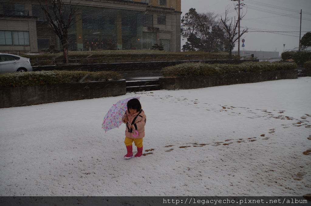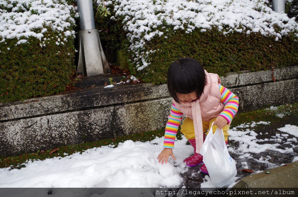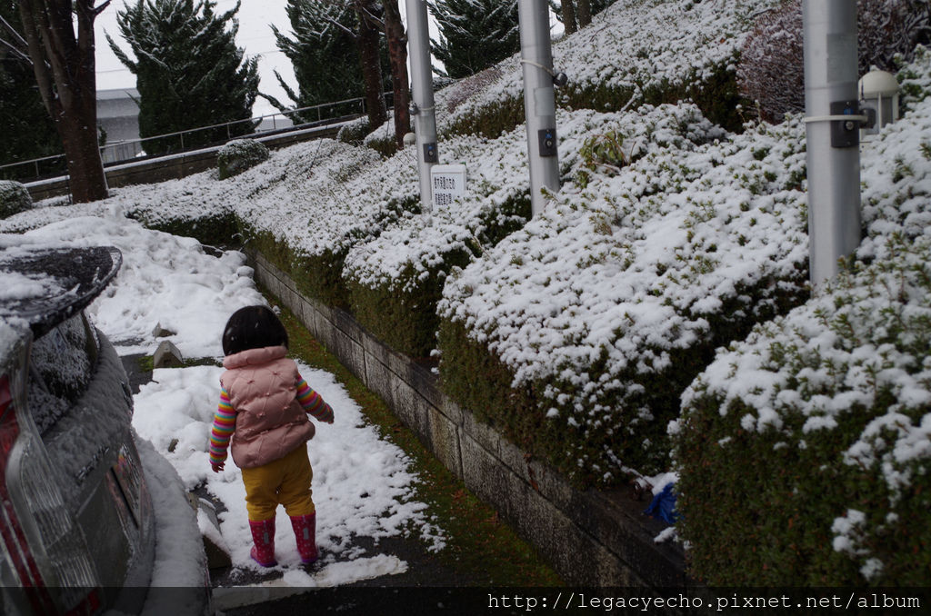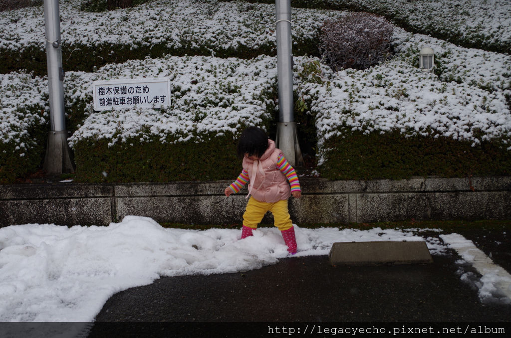 晨起地上有了積雪,這一趟主要的目的是讓亮亮體驗雪地上行走,因為大阪難得有積雪。