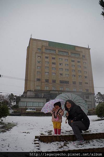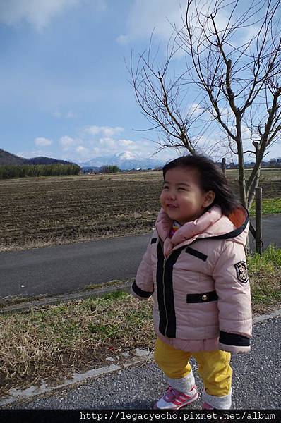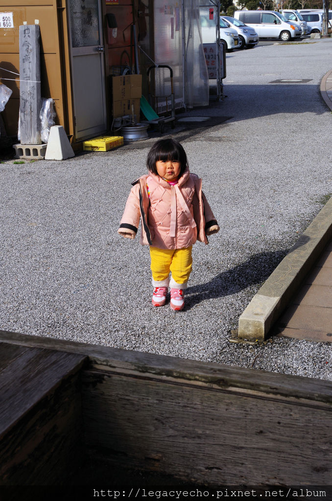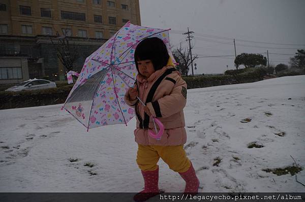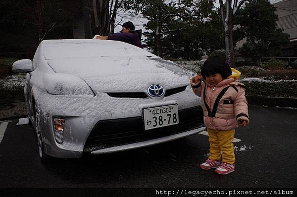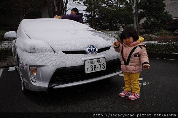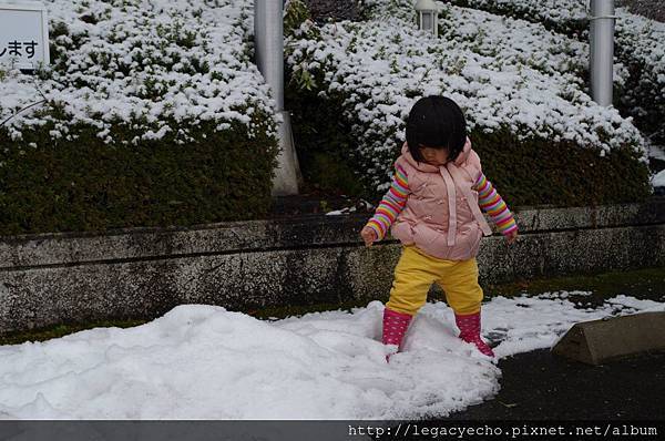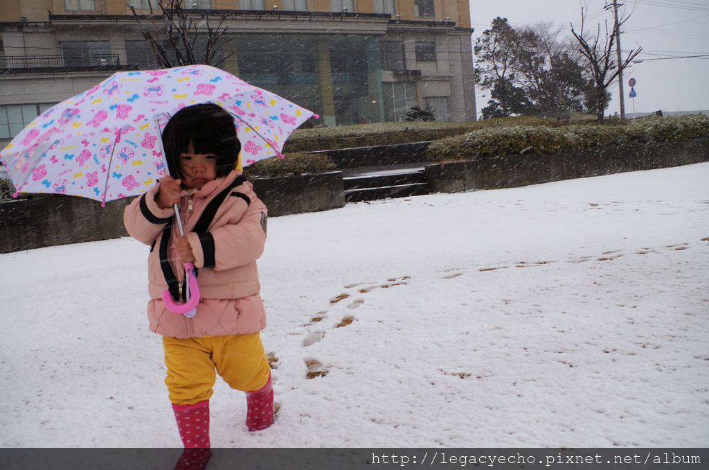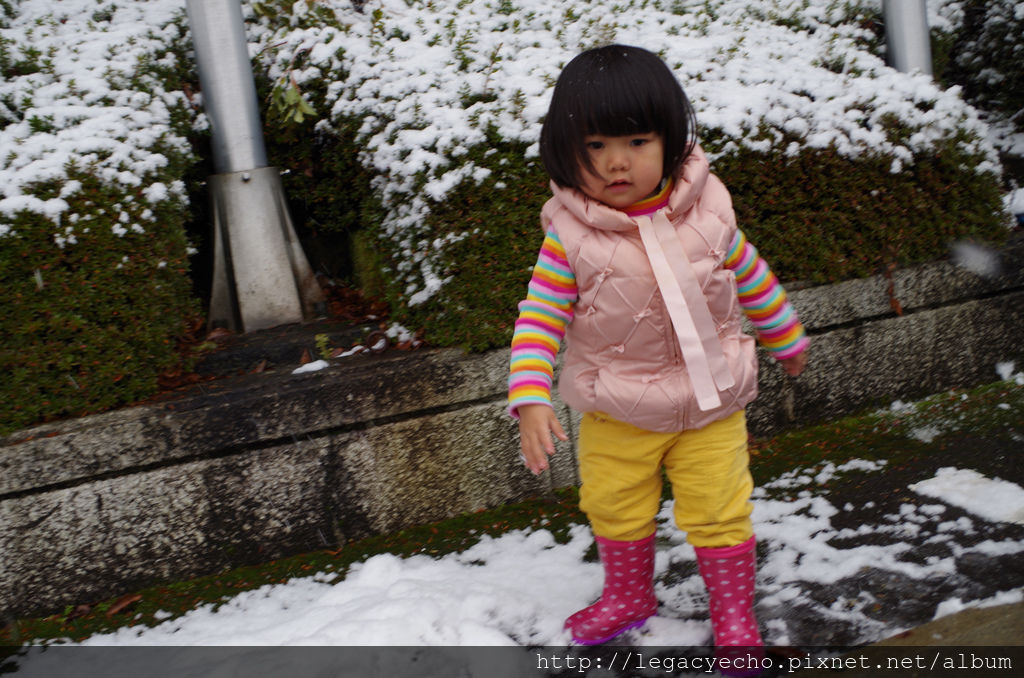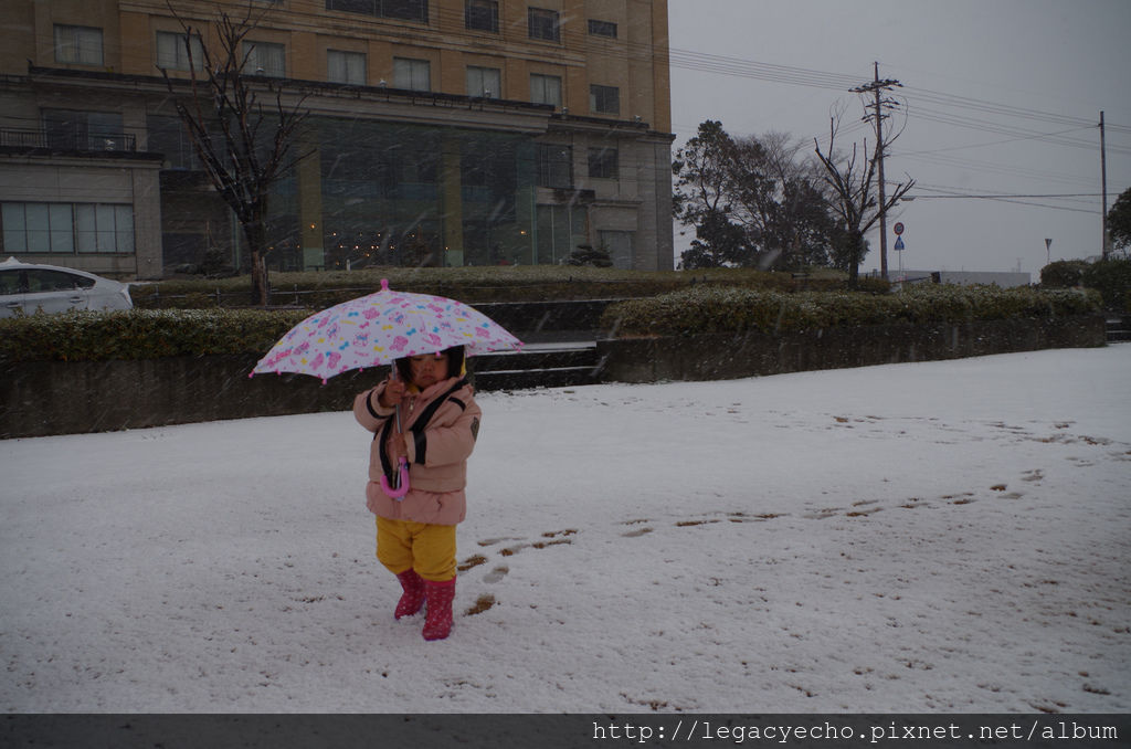 晨起地上有了積雪,這一趟主要的目的是讓亮亮體驗雪地上行走,因為大阪難得有積雪。
