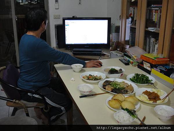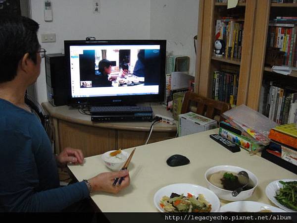 遠距年夜飯,亮亮他們吃水餃、喝雞湯,還有魚。