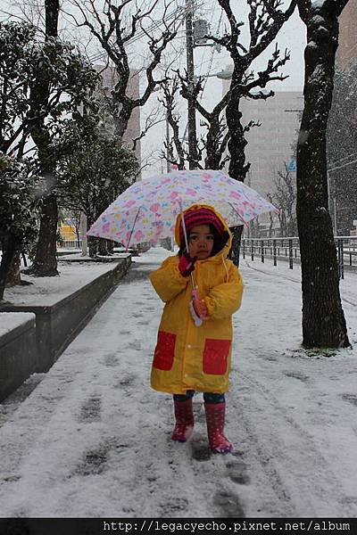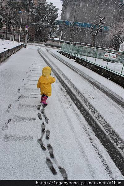 腳印在雪地裡,亮亮似乎成了大腳ㄚ的小巨人。