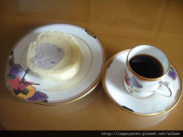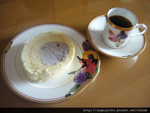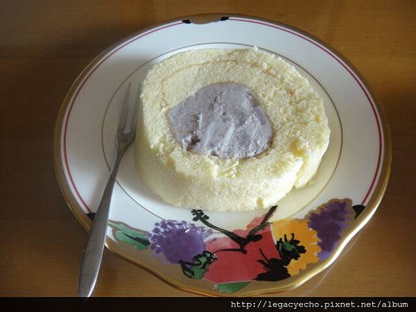 我知道這是小君親手製作的芋頭奶凍捲,正滿心期待中。