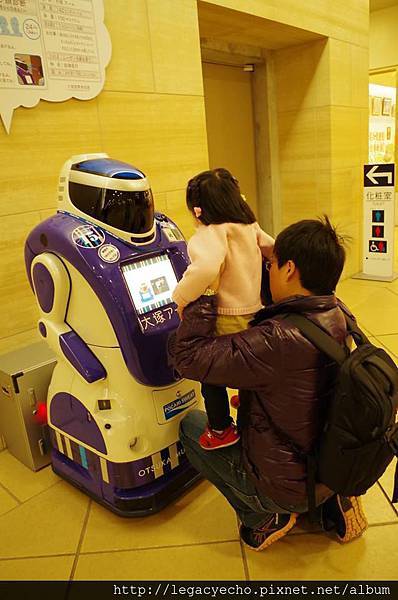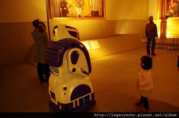 最特別的是機器人解說員--大塚アート”,它也會為參觀的人解說展出的名畫。亮亮小跟班馬上站在機人的旁邊,認真的聽著講解。其實心裡想著,為什麼它會走路?從哪裡發出聲音?