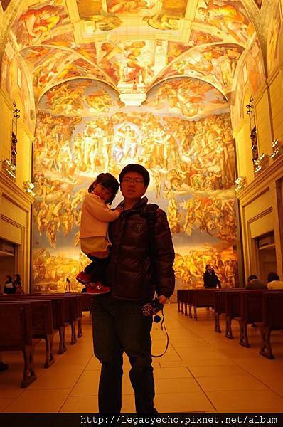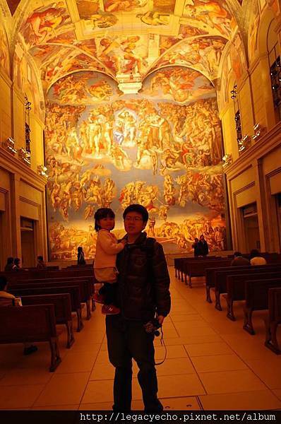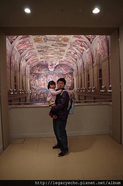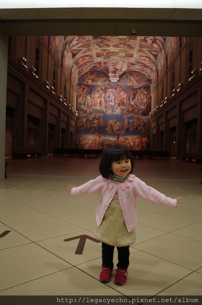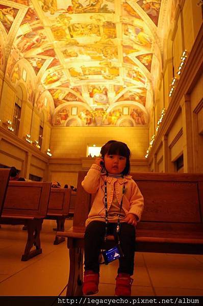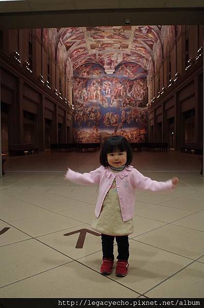 趁著閉館前,參觀人離去的差不多的時候,幫亮亮來一張獨自在仿西斯汀禮拜堂前的獨照。