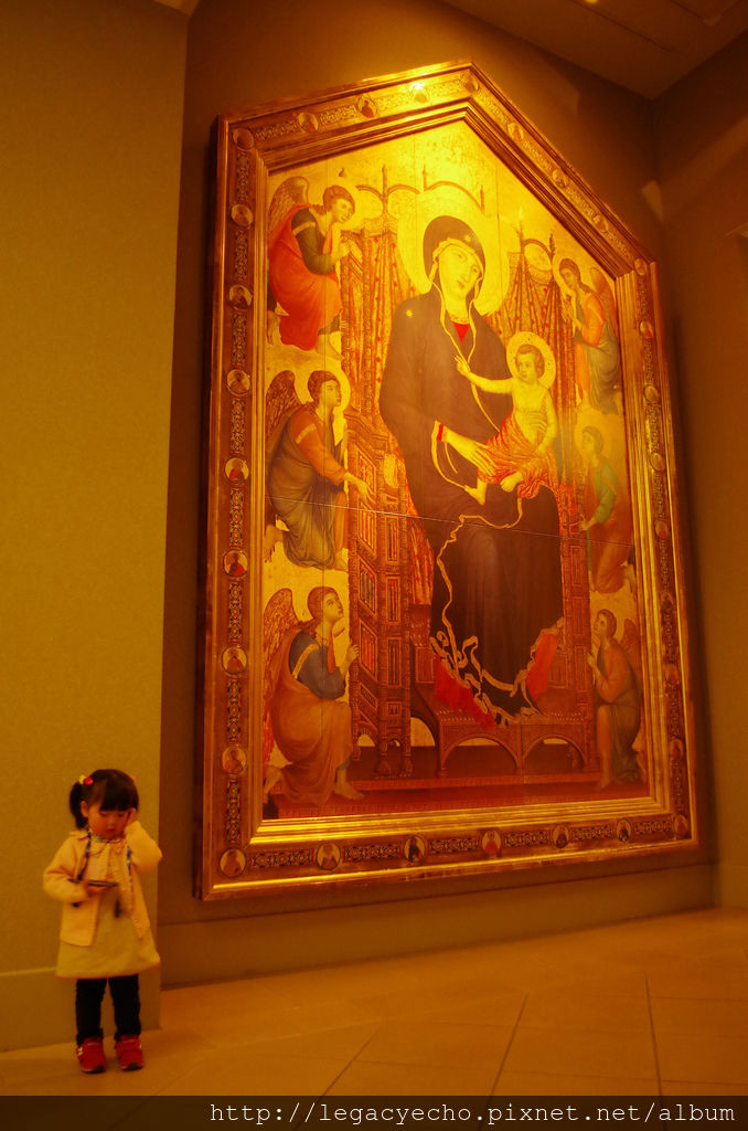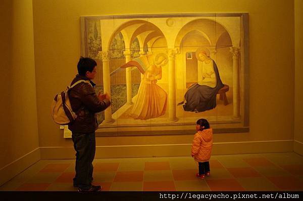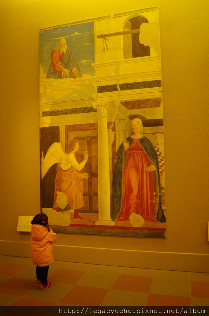 接下來是欣賞一系列中古世紀名畫,此畫室展示了一系列的受胎告知的畫作,有華麗的、寫實的等不同畫風的呈現,亮亮每看一幅,就告訴我們誰是天使,誰是瑪麗亞,也會提出自己的疑問。