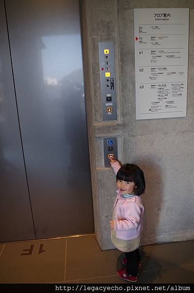 亮亮變身電梯小姐,親切的為我們服務上下樓,其實是要告訴我們亮亮長高了,已經按的到電梯按鈕了!