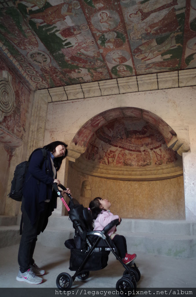 在四面環繞的壁畫讓人沉浸於當時的時代背景及工藝技術,想像著大師帶著學徒依照草稿圖描繪到牆壁及天花板上的情景。