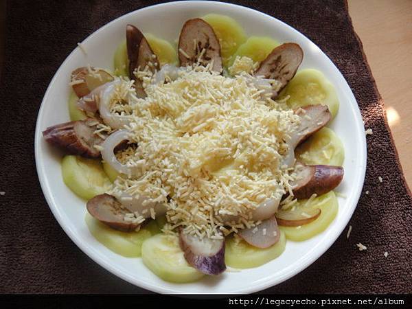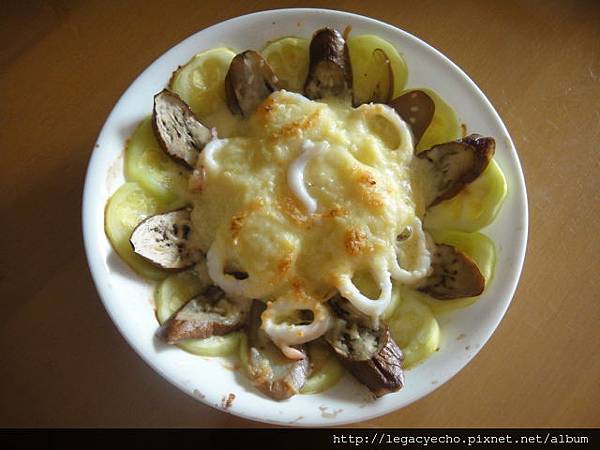 節瓜、茄子、烏賊加上薯泥,撒上起司,焗烤春華滿屋子飄香,作為清明節的早餐,安撫一夜惶惶不安。