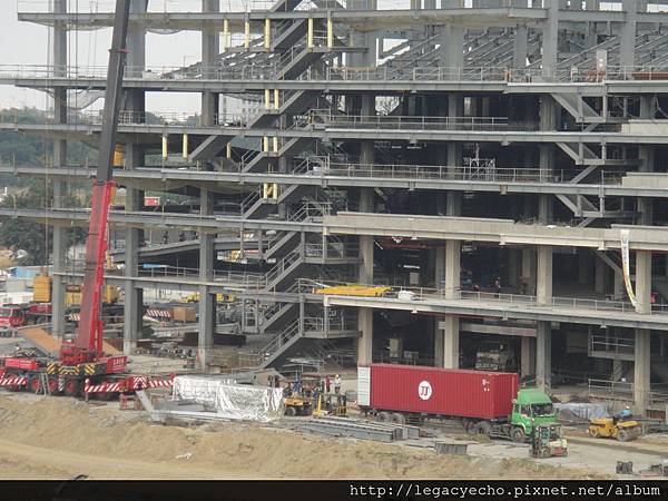 以下照片是2013-10-24鋼骨結構進入影城階段,階梯形的鋼架逐層架設。