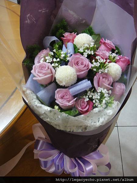(惠芬預備的紫色玫瑰花束)