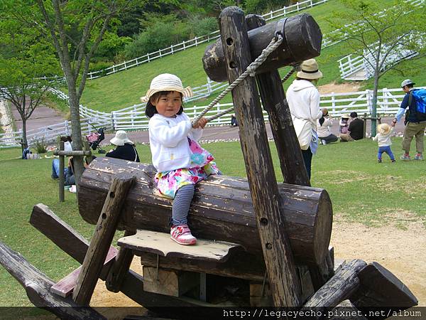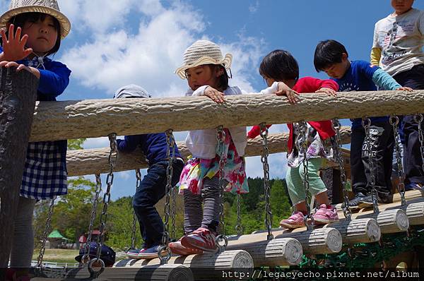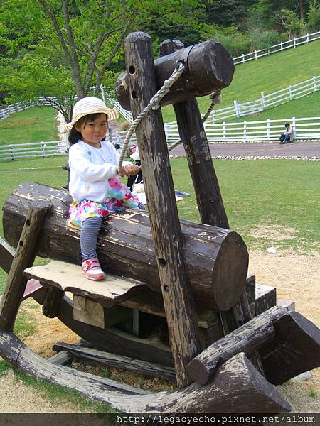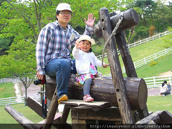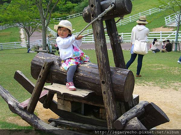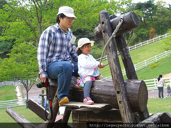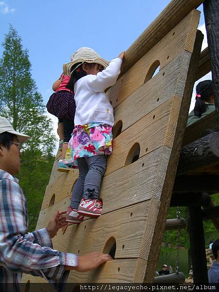 牧場中,設計了許多攀爬遊戲,亮亮在爸爸看顧的安全範圍內,有了新鮮的體驗。
