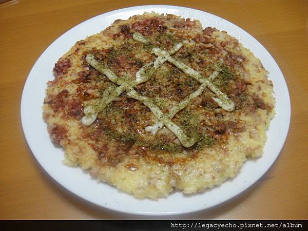 擠了一點美乃滋,撒了一點海苔粉,樣子有點像大阪燒。