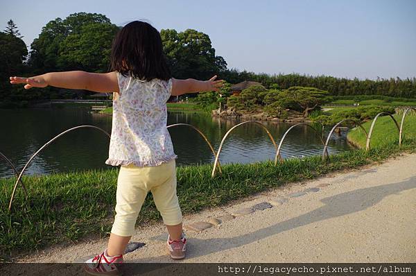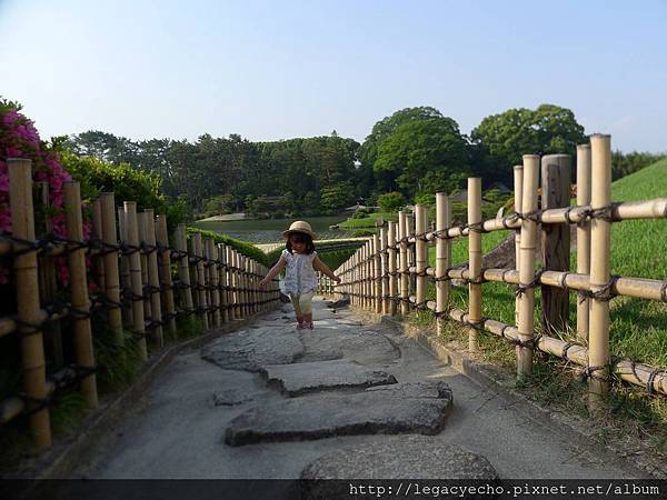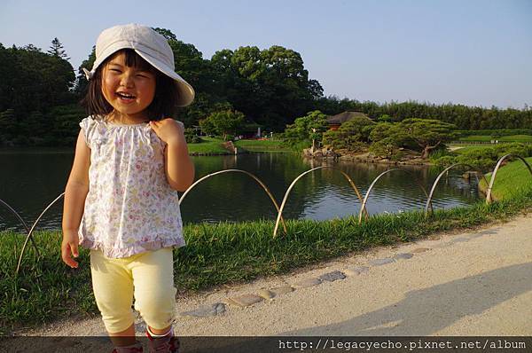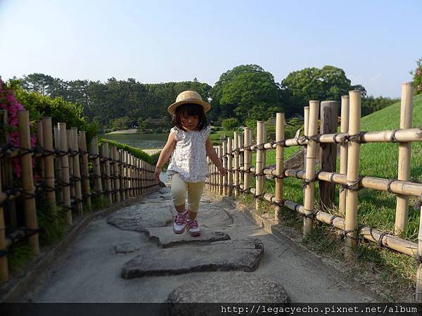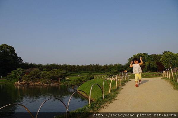 晴朗的天空,爽朗的笑容,在後樂園玩耍的亮亮活潑又可愛。