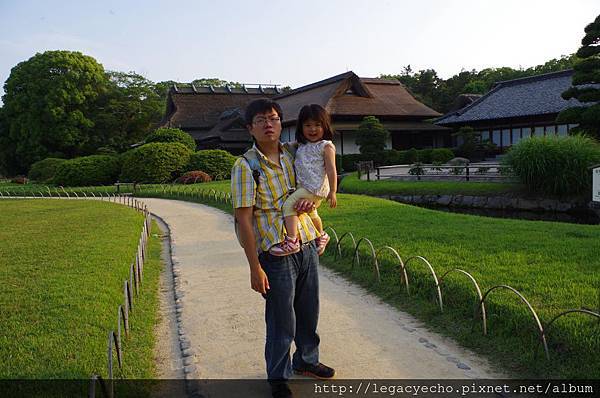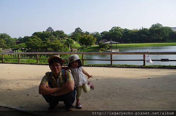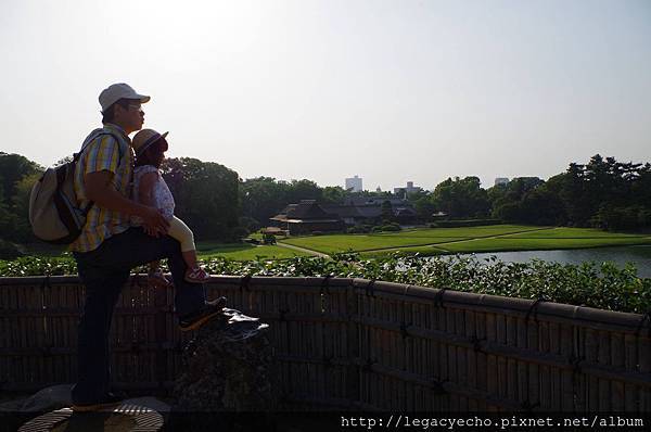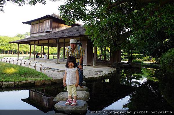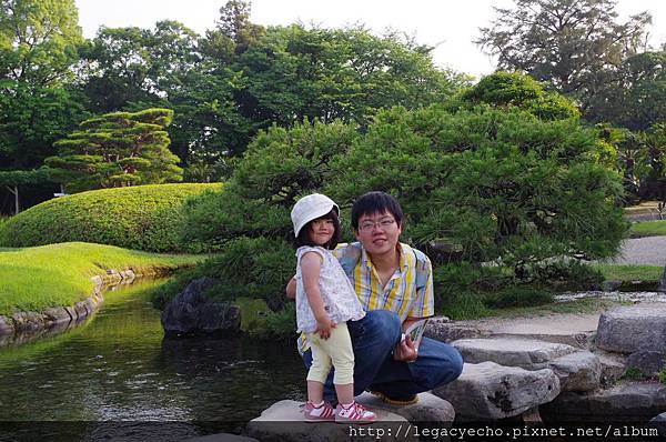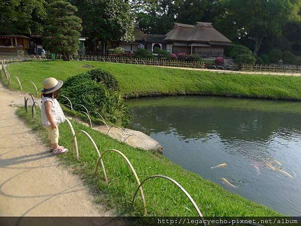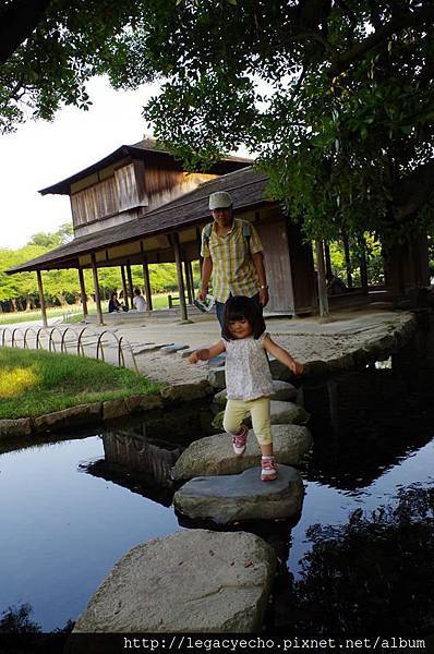 亮亮後方是園區內最高的假山~唯心山,池中央一亭台為御野島的釣墊,可以在此垂釣。