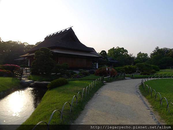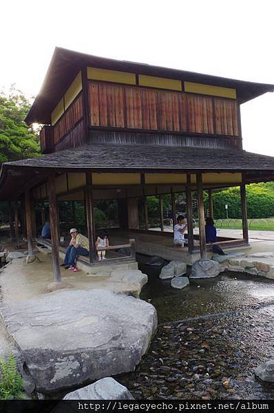 「流店」是休憩的亭台樓閣,一樓亭台中央有一道潺潺流水,是藩主散步休息之處,上方的樓閣作為茶室。