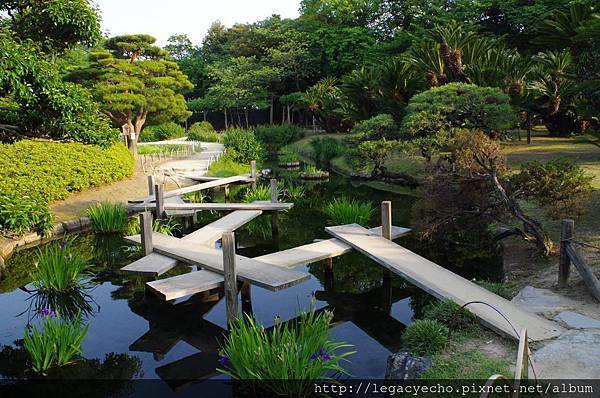 流店另一側有一八橋,由八片木板交錯架設於曲水之上。