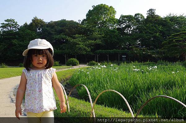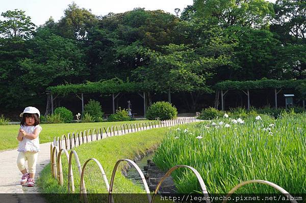 亮亮的左側是菖蒲田,白色的菖蒲花開得比較早,後方有一排紫藤花架。