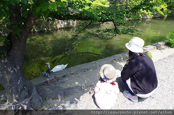 鴿子與白鵝在倉敷川畔對話,不知道亮亮聽懂它們說甚麼嗎?