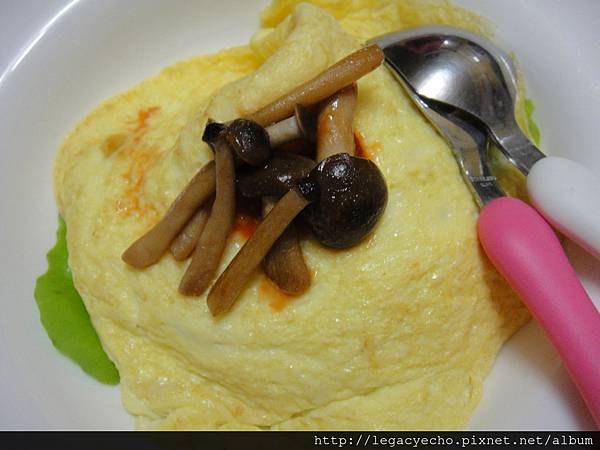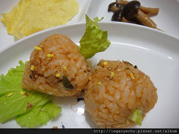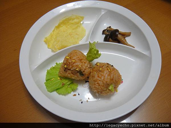 小飯糰不夠看,還有亮亮最喜歡的蛋包飯,配上柳松菇佃煮。