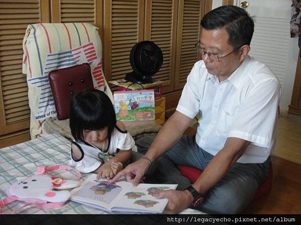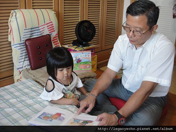 回到家,阿公對亮亮說:阿嬤剛從醫院回來,先讓阿嬤休息一下,阿嬤才有力氣陪你做勞作,阿公先讀繪本給你聽,這樣好不好?」