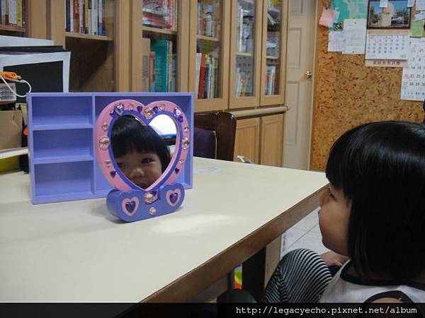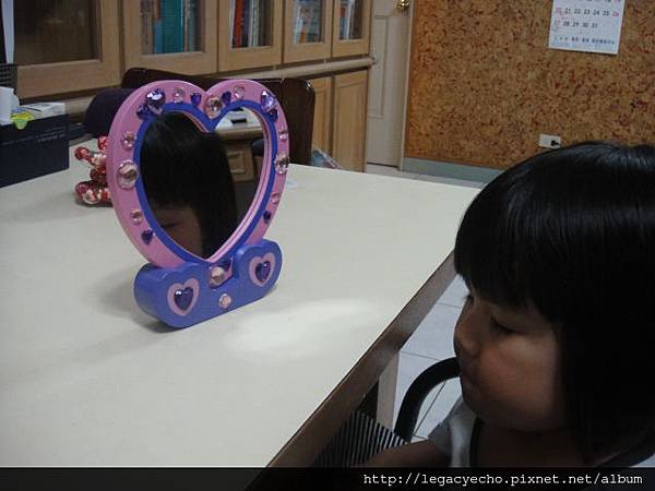 亮亮很喜歡這個鏡子,完成鏡子的裝飾之後,亮亮說:好漂亮,我想對著鏡子許願。