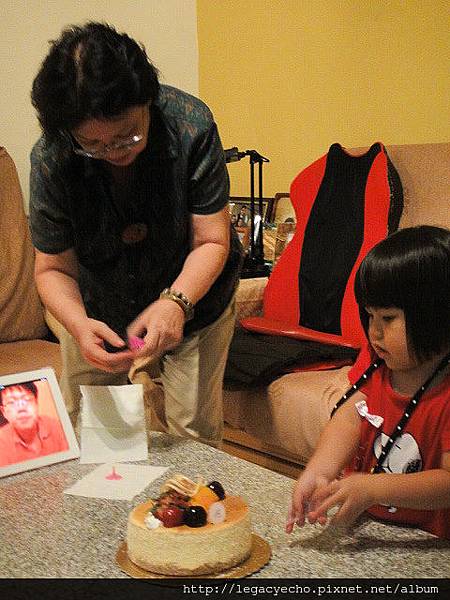 7月18日亮亮三歲生日,惠珍姨婆訂了大億麗緻飯店水果很多的重乳烙蛋糕,陪亮亮過生日。