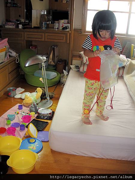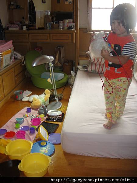 一會兒亮亮離開我的房間,將貼紙貼在她房間的門上。