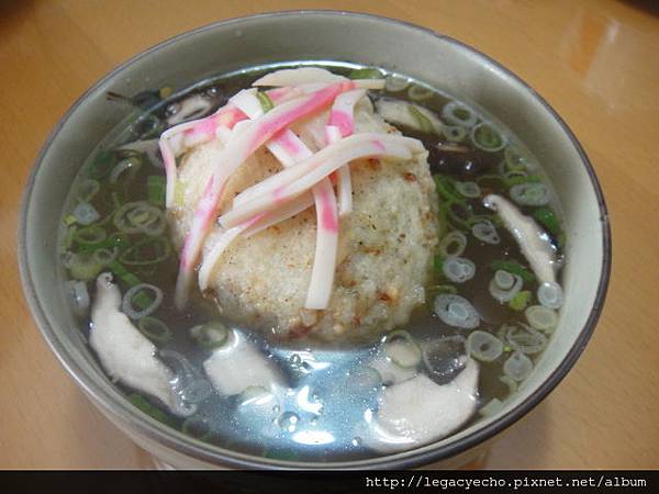 因為好吃,特地外帶的鮭魚炸泡飯成了隔天的早餐,用烤箱將鮭魚炸飯糰烤熱,淋入煮沸後的湯汁,依然鮮美如在店中享用一般。