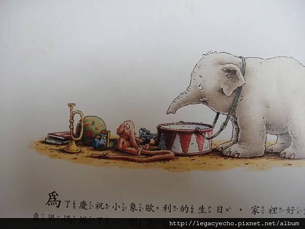 象媽媽為小象歐利特別烘焙淋上滿滿花生醬的蛋糕,也邀請許多朋友來參加生日慶祝會。朋友們送了很多禮物,有小象玩偶、小鼓、喇叭、還有兩雙溜冰鞋。