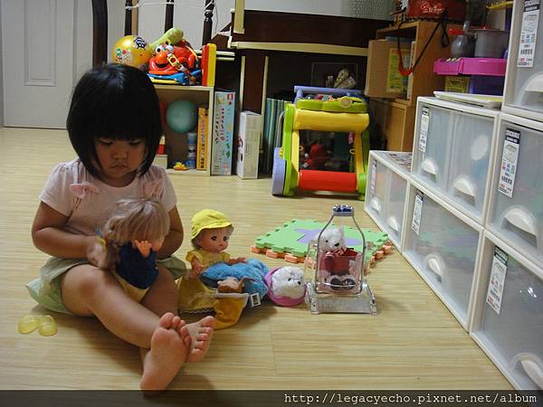 看了一場紙風車劇場演出後,這一幕加入了亮亮的家家酒戲碼。
