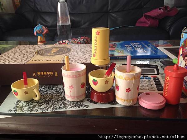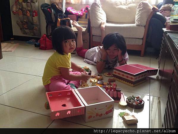 YoYo姊姊是最佳主人,拿出自己收藏已久的木製家家酒午茶組,陪亮亮玩了一上午。