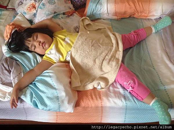 玩累了,吃過曉彤姑姑做的營養美味午餐,立即在YoYo姊姊的床舖臥倒,睡成超級放鬆的大字形。