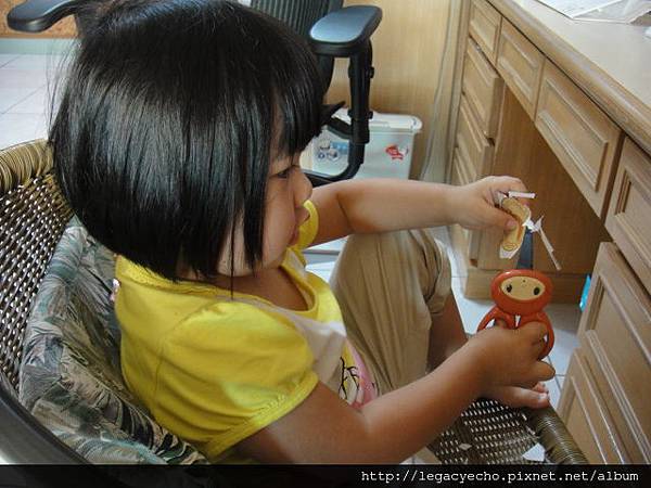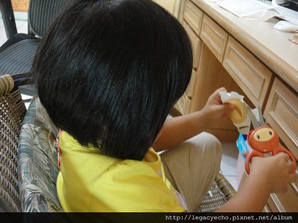 告訴亮亮,先睡午覺,睡醒後,我要拿亮爸爸小時候用的剪刀借亮亮使用。於是亮亮帶著小小期待,迅速的去睡午覺了。