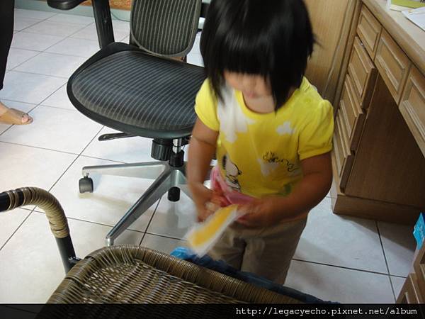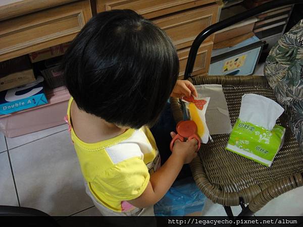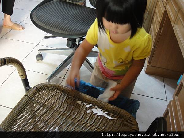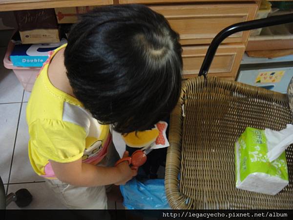 完成之後,亮亮自己拿垃圾桶過來,將剪下來的小紙條收拾乾淨。