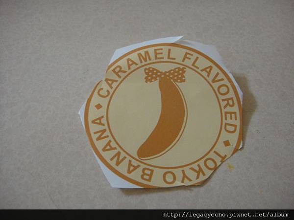 包裝紙比畫圖紙薄,亮亮要剪下圖案,有點難度,紙張上有兩個圖案,一個是圓形Logo,另一個是蝴蝶結香蕉圖案。