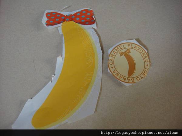 亮爸爸由東京出差回來帶了一盒Tokyo Banana ,蛋糕吃了,包裝紙我留著,紙上的香蕉圖案正好可以讓亮亮練習剪貼。