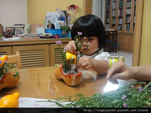 飯後整理好餐桌,餐桌就變成我們要做花卉裝置的工作桌了。