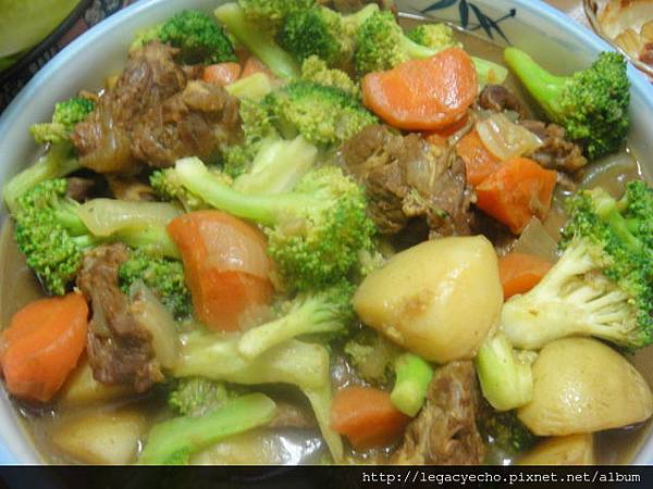 中午吃咖哩飯,晚上加了亮亮幫忙撕外皮的綠花椰,變成一道色香味皆俱的咖哩牛里肌邊肉↓。